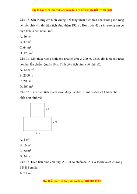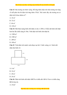 Câu 13. Sân trường em hình vuông. Để tăng thêm diện tích nhà trường mở rộng