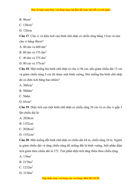 Đây là bản xem thử, vui lòng mua tài liệu để xem chi tiết (có lời giải)