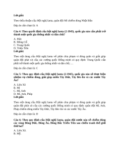 ộ nghị Ianta về phân chia ph m ạ vi đóng quân và gi i ả giáp quân đ i ộ phát xít c a ủ các cư ng ờ qu c ố Đ ng ồ minh có quy đ nh: ị Trung Qu c ố c n ầ ph i ả tr t ở hành m t ộ qu c gi ố a th ng nh ố t ấ và dân ch ; ủ … Đáp án c n ch ầ n l ọ à: C Câu 5: Theo quy đ nh ị c a ủ H i