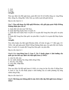 ứ Đông Âu, Đông Bắc Tri u ề Tiên sau chi n t ế ranh th gi ế i ớ th hai ứ Đáp án c n ch ầ n l ọ à: A Câu 7: Theo n i ộ dung c a ủ H i ộ ngh P ị t ố xđam, vi c ệ gi i ả giáp quân Nh t ậ ở Đông Dư ng đ ơ ư c ợ giao cho ai? A. Quân đ i ộ Anh trên toàn Vi t ệ Nam. B. Quân đ i ộ Pháp phí ở a Nam vĩ tuy n 16. ế C. Quân đ i