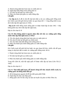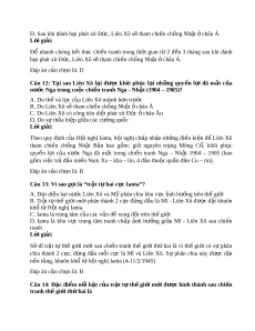 3- Phân chia thành quả chi n t ế h ng gi ắ a ữ các nư c ớ th ng t ắ r n. ậ Trong bối c nh ả đó, m t ộ h i ộ nghị qu c ố tế đư c ợ tri u ệ t p ậ t i ạ Ianta (Liên Xô) (2- 1945) Đáp án c n ch ầ n l ọ à: C Câu 11: Theo H i