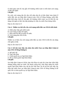 ơ và Đông Nam Á; làm bàn đ p ạ t n ấ công ra mi n ề B c ắ để tiêu di t ệ chủ nghĩa c ng ộ s n, ả ph n ả công phe xã h i ộ chủ nghĩa t phí ừ a Nam. Đáp án c n ch ầ n l ọ à: D Câu 3: Nhi m ệ v c ụ a m ủ i n B ề c ắ Vi t ệ Nam sau hi p ệ đ nh G ị i nev ơ năm ơ 1954 v Đ ề ông Dư ng l ơ à A. Kháng chi n ch ế ống Mĩ c u n ứ ư c ớ B. Khôi ph c ki ụ nh t , hàn g ế n ắ v t ế thư ng chi ơ n t ế ranh C. Ti n hành ế cách m ng ạ xã h i ộ ch nghĩ ủ a D. Khôi ph c ụ kinh t , ế hàn g n ắ v t ế thư ng ơ chi n ế tranh và ti n ế hành cách m ng ạ xã h i ộ ch nghĩ ủ a L i ờ giải: Do cu c ộ cách m ng ạ dân t c