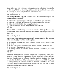 ế tháng 7-1953, hai bên kí hi p ệ đ nh ị đình chi n ế t i ạ Bàn Môn Đi m ế , vĩ tuy n ế 38 vẫn đư c ợ coi là ranh gi i ớ gi a hai ữ nhà nư c ớ trên bán đ o. ả Đáp án c n ch ầ n l ọ à: D Câu 9: Hi p ệ đ nh ị hòa h p ợ gi a ữ hai mi n ề Nam - B c ắ Tri u ề Tiên đư c ợ kí k t ế