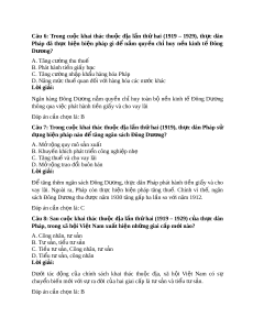 ớ hàng hóa các nư c khác ớ L i ờ giải: Ngân hàng Đông Dư ng ơ n m ắ quy n ề chỉ huy toàn bộ n n ề kinh tế Đông Dư ng ơ thông qua vi c phát ệ hành ti n ề gi y và cho ấ vay lãi Đáp án c n ch ầ n l ọ à: B Câu 7: Trong cu c khai ộ thác thu c đ ộ a l ị n t ầ h hai ứ (1919), th c dân P ự háp sử