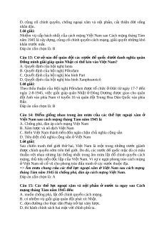 B. Việt Nam đã giành đư c ợ đ c ộ l p ậ và xây d ng ự đư c ợ chính quy n ề c a ủ riêng mình C. S ự ng h ủ c ộ a ủ qu n chúng ầ nhân dân D. S phát ự tri n c ể a phong t ủ rào cách m ng t ạ h gi ế i ớ L i ờ giải: Thu n ậ l i ợ cơ b n ả nh t ấ c a ủ nư c ớ VNDCCH sau Cách m ng ạ tháng Tám năm 1945 là n n ề đ c l ộ p dân ậ t c và chí ộ nh quy n cách ề m ng đ ạ ư c ợ xác l p. ậ Đáp án c n ch ầ n l ọ à: B Câu 3: Sau cách m ng