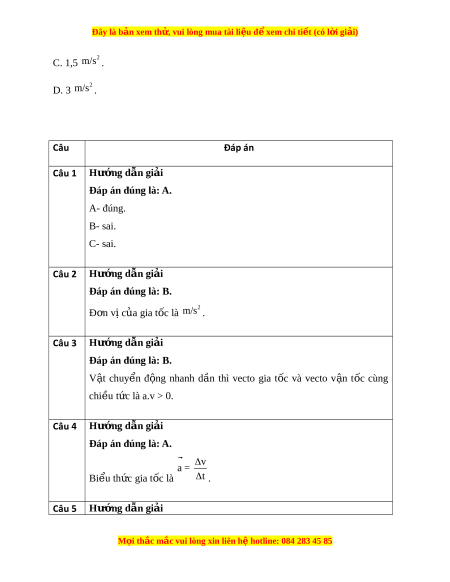 Đây là bản xem th , vu ử i lòng mua tài li u ệ đ xe ể m chi ti t (c ế ó l i ờ gi i ả ) C. 1,5 2 m/s . D. 3 2 m/s . Câu Đáp án Câu 1 Hư ng d ớ ẫn gi i ả