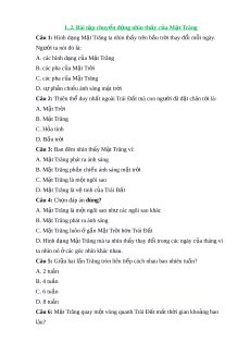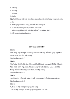D. Cả ba đáp án trên đ u đúng. ề L I Ờ GIẢI CHI TI T Ế Câu 1: Hình d ng M ạ t ặ Trăng ta nhìn th y t ấ rên b u t ầ r i ờ thay đ i ổ m i ỗ ngày. Ngư i ờ ta nói đó là các pha c a ủ M t ặ Trăng. Đáp án cần ch n ọ là: C Câu 2: M t