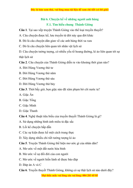 Câu 5. Truyện Thánh Gióng thể hiện mơ ước gì của nhân dân?