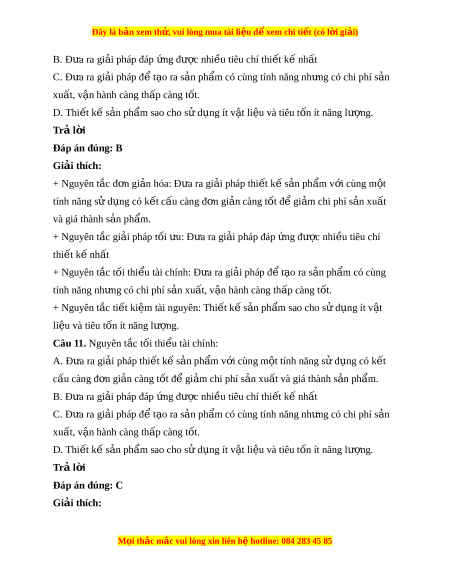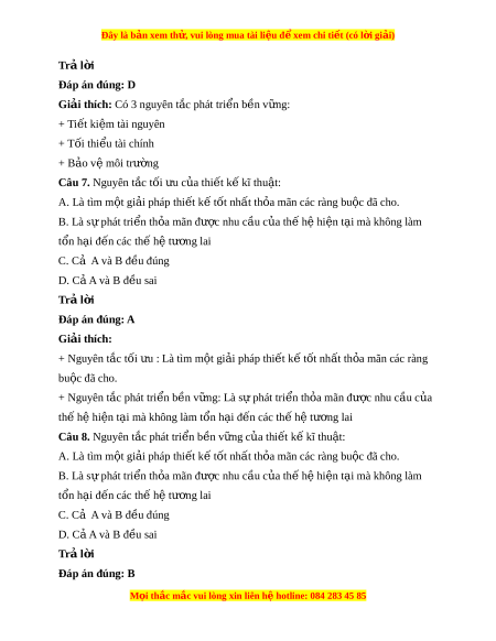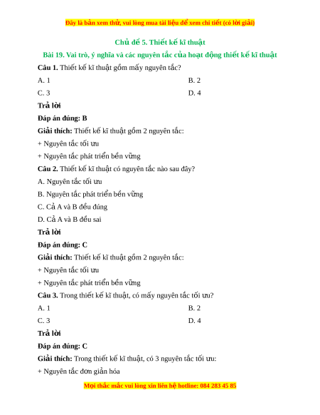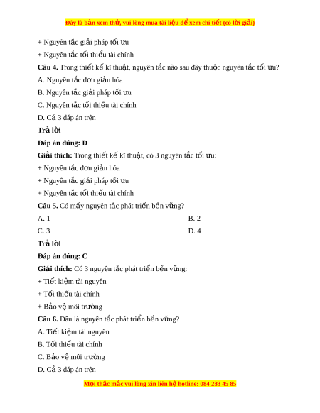 Đây là bản xem th , vu ử i lòng mua tài li u ệ đ xe ể m chi ti t (c ế ó l i ờ gi i ả ) + Nguyên tắc gi i ả pháp t i ố u ư + Nguyên tắc tối thi u ể tài chính Câu 4. Trong thi t ế kế kĩ thu t ậ , nguyên t c ắ nào sau đây thu c ộ nguyên t c ắ t i ố u? ư A. Nguyên t c đ ắ n gi ơ n ả hóa B. Nguyên t c ắ gi i ả pháp t i ố u ư C. Nguyên t c ắ t i ố thi u t ể ài chính D. C 3 đáp án ả trên Trả l i ờ Đáp án đúng: D