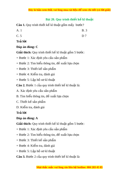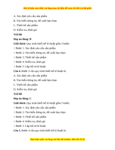 Câu 1. Quy trình thi t ế k kĩ ế thu t ậ g m ồ m y b ấ ư c ớ ? A. 1 B. 3 C. 5 D 7 Trả l i ờ Đáp án đúng: C