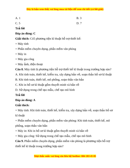 Câu 7. Có m y ph ng ti n kĩ thu t h tr thi t k ?ấ ươ ệ ậ ỗ ợ ế ế