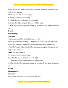 D. Xốp, nhẹ gần b ng không khí ằ , nh ng l ư i ạ có tính ch t ấ ch u nhi ị t ệ và ch u nén ị cao Trả l i ờ Đáp án đúng: C Giải thích: + S i ợ carbon nano: Nh và có đ ẹ ộ b n cao h ề n t ơ hép M i