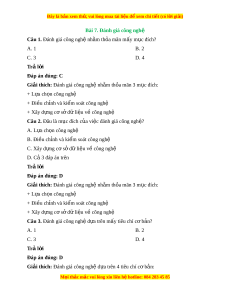Giải thích: Đánh giá công nghệ d a t ự rên 4 tiêu chí cơ b n: ả 1. Hi u qu ệ ả 2. Độ tin c y ậ 3. Tính kinh tế 4. Môi trư ng ờ Câu 7. Tiêu chí th t ứ khi ư đánh giá công ngh l ệ à: A. Hi u qu ệ ả B. Đ t ộ in c y ậ C. Tính kinh tế D. Môi trư ng ờ Trả l i ờ Đáp án đúng: D