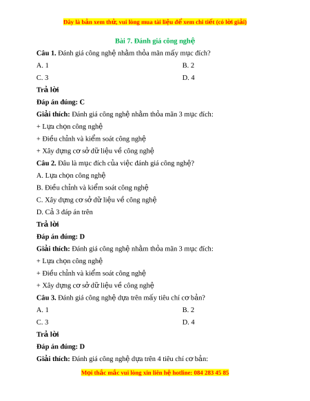 Câu 2. Đâu là m c đích c a vi c đánh giá công ngh ?ụ ủ ệ ệ