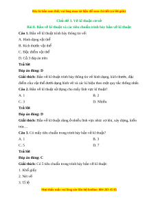 ậ và các tiêu chu n t ẩ rình bày b n v ả kĩ ẽ thu t ậ Câu 1. B n v ả ẽ kĩ thu t ậ trình bày thông tin v : ề A. Hình d ng ạ v t ậ thể B. Kích thư c v ớ t ậ thể C. Đ c đi ặ m ể v t ậ thể D. C 3 đáp án ả trên Trả l i ờ Đáp án đúng: D Giải thích: B n ả v k ẽ ĩ thu t