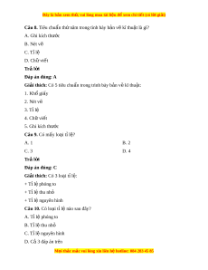 Giải thích: Có 5 tiêu chu n t ẩ rong trình bày b n ả v k ẽ ĩ thu t ậ : 1. Khổ giấy 2. Nét vẽ 3. Tỉ lệ 4. Chữ vi t ế 5. Ghi kích thư c ớ Câu 9. Có mấy lo i ạ t l ỉ ? ệ A. 1 B. 2 C. 3 D. 4 Trả l i ờ Đáp án đúng: C