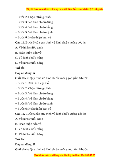 Câu 12. B c 6 c a quy trình v hình chi u vuông góc là:ướ ủ ẽ ế