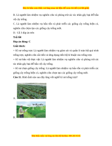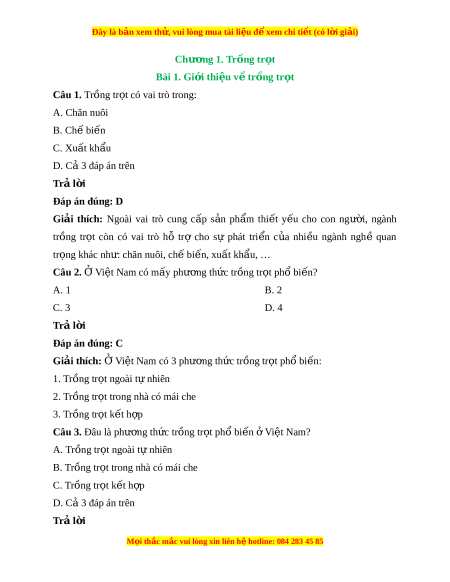 Đây là bản xem th , vu ử i lòng mua tài li u ệ đ xe ể m chi ti t (c ế ó l i ờ gi i ả ) Chư ng 1. ơ Tr ng t ồ r t ọ Bài 1. Gi i ớ thi u v ệ t ề r ng ồ tr t ọ Câu 1. Trồng tr t ọ có vai trò trong: A. Chăn nuôi B. Ch bi ế n ế C. Xu t ấ kh u ẩ D. C 3 đáp án ả trên Trả l i ờ Đáp án đúng: D