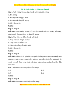Bài 10. Nuôi dư ng và chă ỡ m sóc v t ậ nuôi Câu 1. Nuôi dư ng ỡ là cung c p cho v ấ t ậ nuôi ch t ấ dinh dư ng: ỡ A. Đủ lư ng ợ B. Phù h p v ợ i ớ t ng gi ừ ai đo n ạ C. Phù h p v ợ i ớ t ng đ ừ i ố tư ng ợ D. C 3 đáp án ả trên Trả l i ờ Đáp án đúng: D