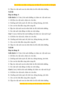 ẽ khô ráo, thông thoáng, yên tĩnh. + Cho con bú s a ữ đ u càng ầ s m ớ càng t t ố . + T p cho v ậ t ậ nuôi non ăn s m ớ th c ăn đ ứ ủ ch t ấ dinh dư ng. ỡ + Cho v t ậ nuôi v n đ ậ ng ộ và ti p xúc ánh n ế ng. ắ Câu 6. L u ý t ư h nh ứ ất khi nuôi dư ng v ỡ chăm ầ sóc v t ậ nuôi là gì? A. Giữ m ấ cho v t