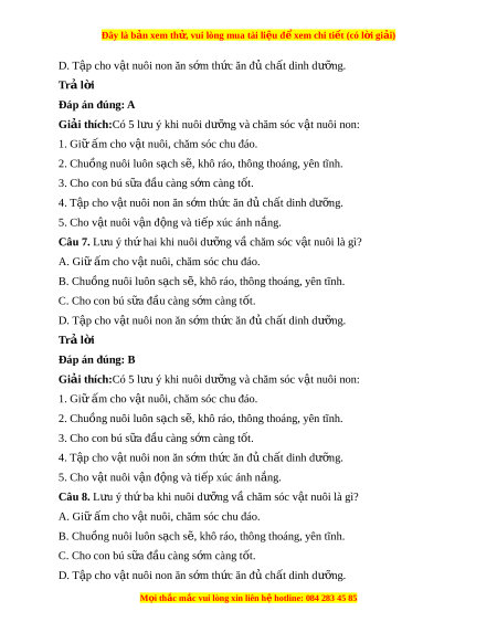 Đây là bản xem th , vu ử i lòng mua tài li u ệ đ xe ể m chi ti t (c ế ó l i ờ gi i ả ) D. T p cho v ậ t ậ nuôi non ăn s m ớ th c ăn ứ đ ch ủ t ấ dinh dư ng. ỡ Trả l i ờ Đáp án đúng: A