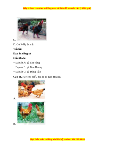 ọ gà giống gồm có m y công vi ấ c? ệ A. 1 B. 2 C. 3 D. 4 Trả l i ờ Đáp án đúng: B Giải thích: Ch n gà ọ