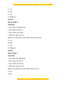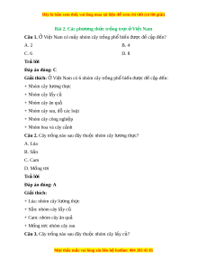 Câu 1. Ở Việt Nam có mấy nhóm cây trồng phổ bi n đ ế ư c ợ đ c ề p đ ậ n? ế A. 2 B. 4 C. 6 D. 8 Trả l i ờ Đáp án đúng: C