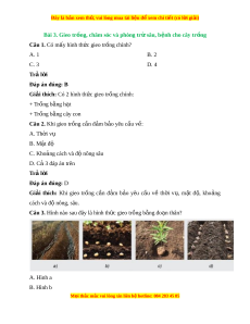 Câu 2. Khi gieo trồng c n đ ầ m ả b o yêu ả c u v ầ : ề A. Th i ờ vụ B. M t ậ độ C. Kho ng cách ả và đ nông s ộ âu D. C 3 đáp án ả trên Trả l i ờ Đáp án đúng: D