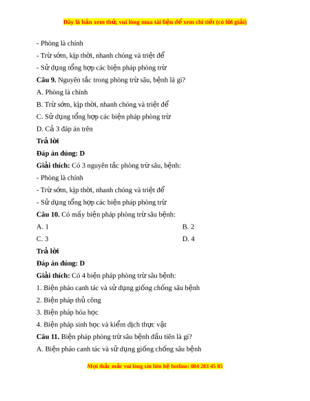 Câu 8. Có m y nguyên t c phòng tr sâu, b nh?ấ ắ ừ ệ