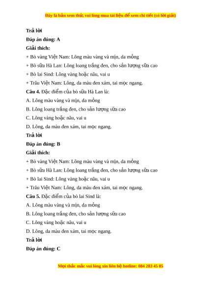 Đây là bản xem th , vu ử i lòng mua tài li u ệ đ xe ể m chi ti t (c ế ó l i ờ gi i ả ) Trả l i ờ Đáp án đúng: A Giải thích: + Bò vàng Vi t