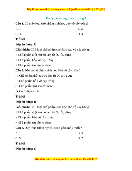 Đây là bản xem th , vu ử i lòng mua tài li u ệ đ xe ể m chi ti t (c ế ó l i ờ gi i ả ) Ôn t p ch ậ ư ng 1 và ch ơ ư ng 2 ơ Câu 1. Có mấy lo i ạ ch ph ế m ẩ sinh h c ọ b o v ả cây t ệ r ng? ồ A. 1 B. 2 C. 3 D. 4 Trả l i ờ Đáp án đúng: C