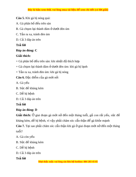 ả a xa, tránh đèn úm: khi gà b nóng ị Câu 6. Đặc đi m ể c a ủ gà m i ớ n : ở A. Gà y u ế B. S c đ ứ kháng kém ề C. D b ễ ị bệnh D. C 3 đáp án ả trên Trả l i ờ Đáp án đúng: D
