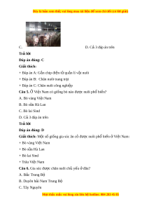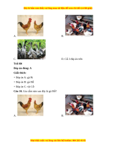 Câu 5. Ở Việt Nam có giống bò nào đư c ợ nuôi phổ bi n? ế A. Bò vàng Vi t ệ Nam B. Bò s a ữ Hà Lan C. Bò lai Sind D. C 3 đáp án ả trên Trả l i ờ Đáp án đúng: D Giải thích: M t