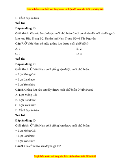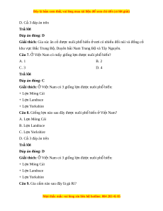 Câu 8. Giống l n nào s ợ au đây đư c ợ nuôi phổ bi n ế ở Vi t ệ Nam? A. L n M ợ óng Cái B. L n L ợ andrace C. L n ợ Yorkshire D. C 3 đáp án ả trên Trả l i ờ Đáp án đúng: D