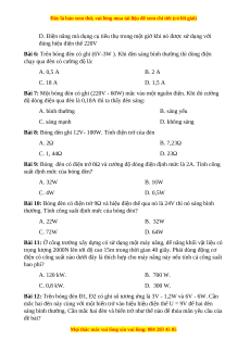 Bài 8: Bóng đèn ghi 12V- 100W. Tính điện trở của đèn A. 2Ω B. 7,23Ω C. 1, 44Ω D. 23Ω