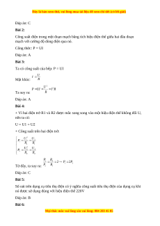 mạch với cường độ dòng điện qua nó. Công thức: P = UI Đáp án: A Bài 3:
