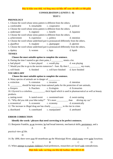 CONSOLIDATION 2 (UNITS 5 - 8) TEST 1 PHONOLOGY