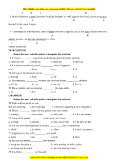 20. Let’s go to the station to see her __________. a. through b. back c. off d. to