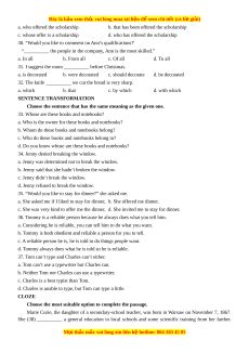 32. The knife __________ we cut the bread is very sharp. a. which b. that c. by which d. with which SENTENCE TRANSFORMATION