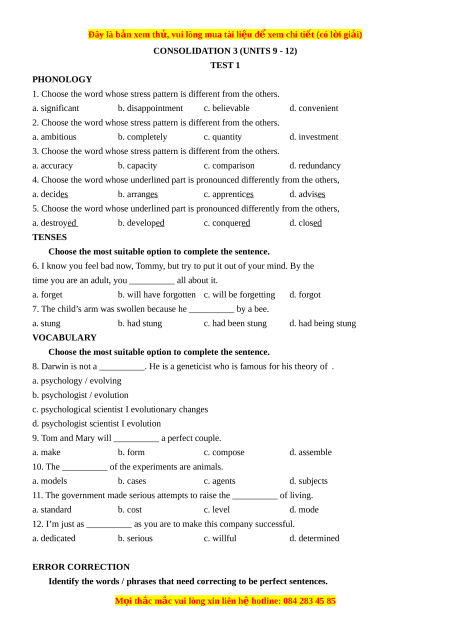 CONSOLIDATION 3 (UNITS 9 - 12) TEST 1 PHONOLOGY