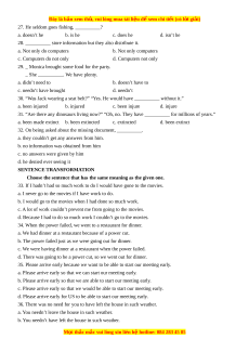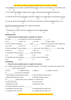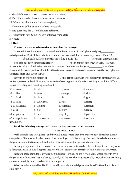 means of feeding an expanding world (45) __________. 38. a. trees b. fish c. grasses d. animals 39. a. dive b. swim c. emerge d. drift 40. a. food b. plant c. fish d. grass 41. a. same b. equivalent c. part d. thing 42. a. calculated b. counted c. estimated d. thought 43. a. lot b. a lot c. much d. many 44. a. quantity b. total c. quality d. potential 45. a. population b. development c. economy d. resident READING