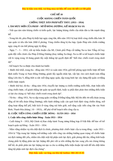 ệ đ xe ể m chi ti t ế (có l i ờ gi i ả ) CHỦ Đ 10 Ề CU C Ộ KHÁNG CHI N Ế TOÀN QU C Ố CHỐNG TH C Ự DÂN PHÁP K T