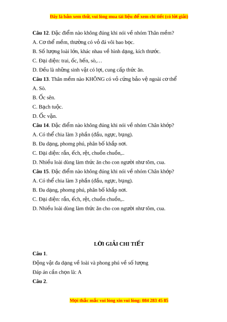 Đây là bản xem th , vu ử i lòng mua tài li u ệ đ xe ể m chi ti t ế (có l i ờ gi i ả ) Câu 12. Đ c ặ đi m