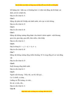 ề oài dùng làm th c ăn cho ứ con ngư i ờ nh t ư ôm, cua. L I Ờ GIẢI CHI TI T Ế Câu 1. Đ ng v ộ t ậ đa d ng v ạ l ề oài và phong phú v s ề l ố ư ng ợ Đáp án cần ch n ọ là: A Câu 2. M i