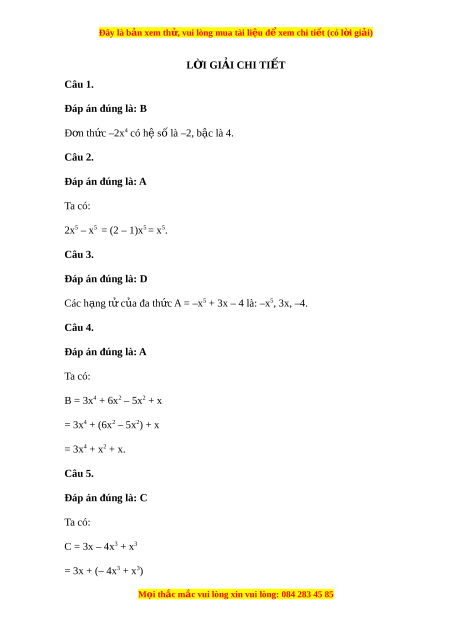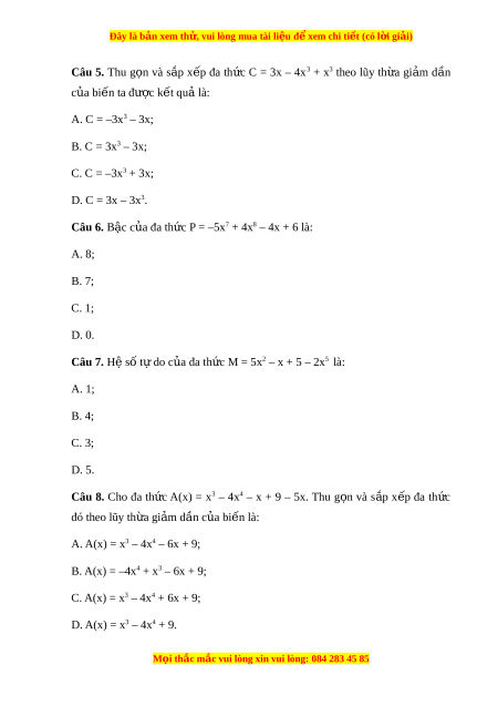 Đây là bản xem th , vu ử i lòng mua tài li u ệ đ xe ể m chi ti t ế (có l i ờ gi i ả ) Câu 5. Thu g n ọ và s p ắ x p ế đa th c