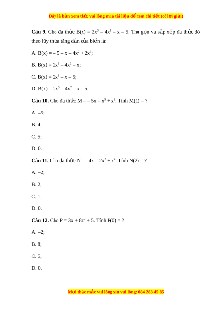 Đây là bản xem th , vu ử i lòng mua tài li u ệ đ xe ể m chi ti t ế (có l i ờ gi i ả ) Câu 9. Cho đa th c