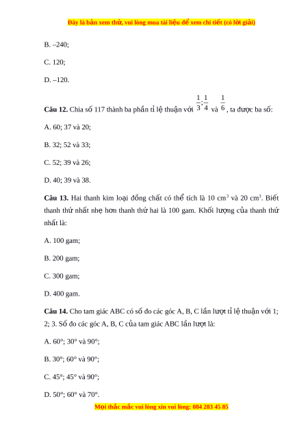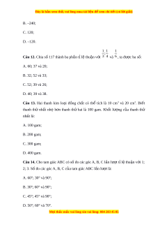 Câu 12. Chia s 117 thành ba ph n t l thu n v i ố ầ ỉ ệ ậ ớ