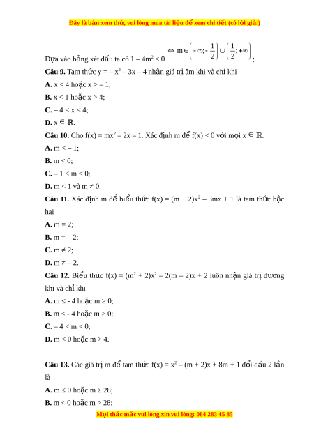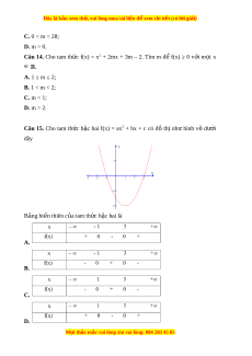 Đây là bản xem th , vu ử i lòng mua tài li u ệ đ xe ể m chi ti t (c ế ó l i ờ gi i ả ) C. 0 < m < 28; D. m > 0. Câu 14. Cho tam th c