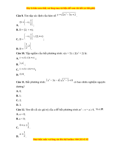 Câu 12. Tìm tất c các ả giá tr c ị a ủ a đ b ể ất phư ng t ơ rình ax2 – x + a ≥ 0, x A. a = 0; B. a < 0; 1 0 a C. 2 . 1 a D. 2 . M i