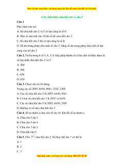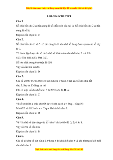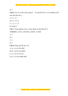 Mà 65⁝5 và 10⁝5 nên a = 65q + 10chia hết cho 5. Đáp án cần chọn là: D Câu 5.